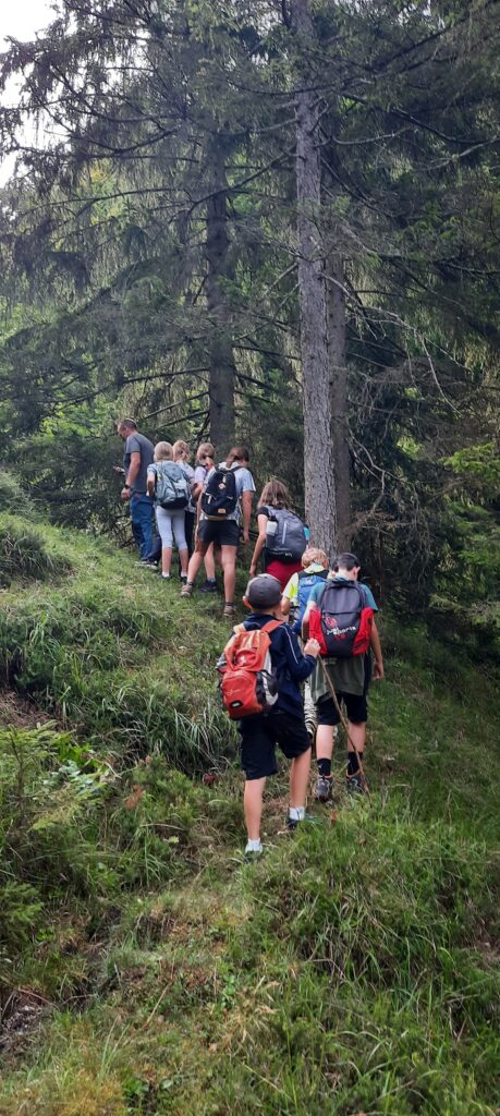 Am 20. August wanderten wir mit 8 Kindern zur Stubenalm. Das ,Steigal‘ war etwas abenteuerlich. Wir bekamen eine Führung, wie Käse noch traditionell hergestellt wird. Nach einer Brotzeit mit Käse und Speck, ging es gestärkt nach unten.